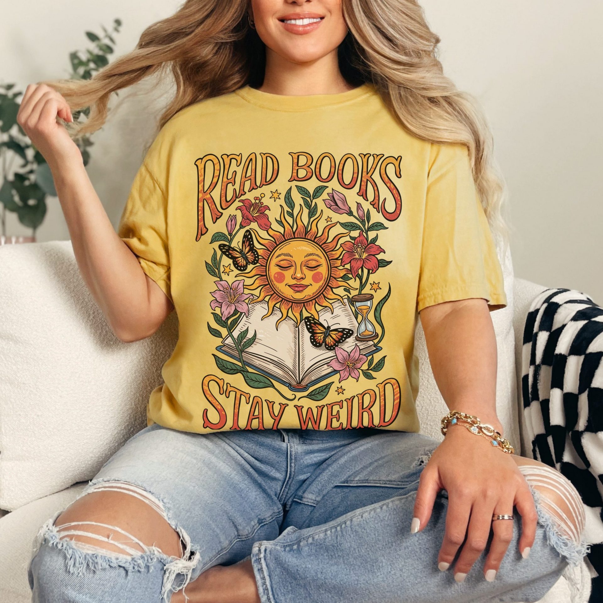 EA must-have for book lovers who embrace the weird. This soft, easy-to-wear tee features a whimsical “Read Books, Stay Weird” design and comes in a variety of colors—perfect for everyday wear, bookstore visits, and cozy reading days.
